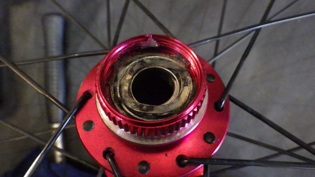 EQUALホイールのハブのお掃除。今回はリアの半フリー側だけベアリング交換。洗車の仕方によっては水が入りやすいようです。店頭の試乗ホイールもあるので、交換用のベアリングは常備しています。