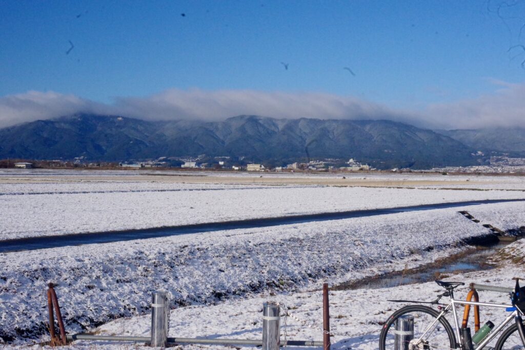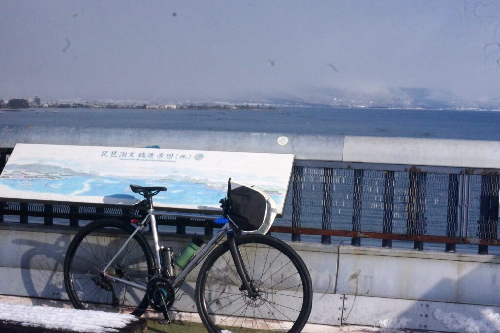 日本海から寒気が押し寄せているようで、近江大橋から堅田方面を見ると真っ白。明日は初詣ライドを企画しているが…